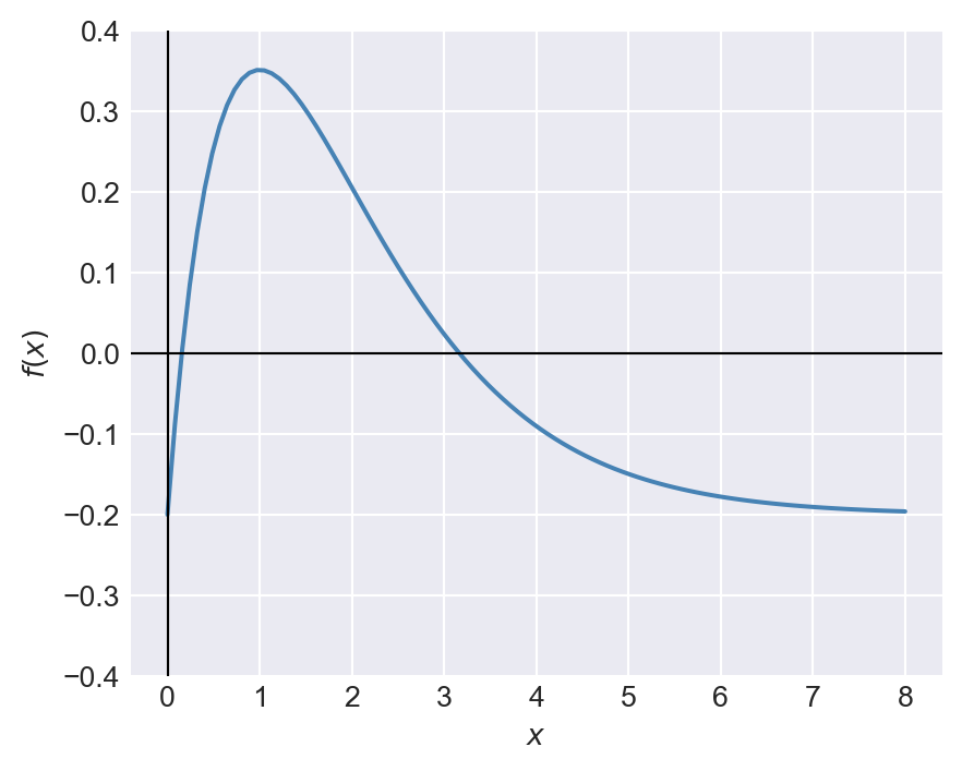 f: The function for which we want to find a root.args: A tuple containing the extra arguments passed to the function.method: Type of the solver. See Table 8.1 for the list of available methods and their required arguments.bracket: A tuple specifying the interval that contains a root of the function. This argument is required for the methods'bisect','brentq','brenth','ridder', and'toms748'.x0,x1: Initial guesses for the root. These arguments are required for the method'newton'.