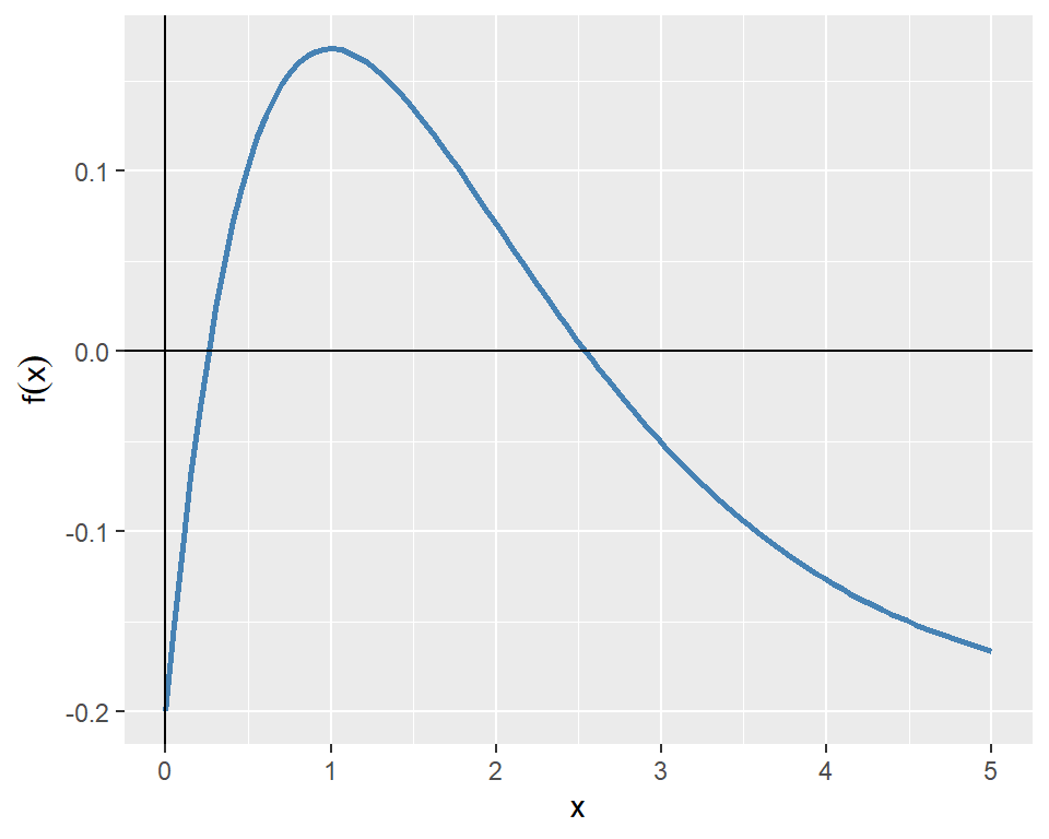 As an example, we consider the following function: \[ f(x)=xe^{-x}-0.2. \]
