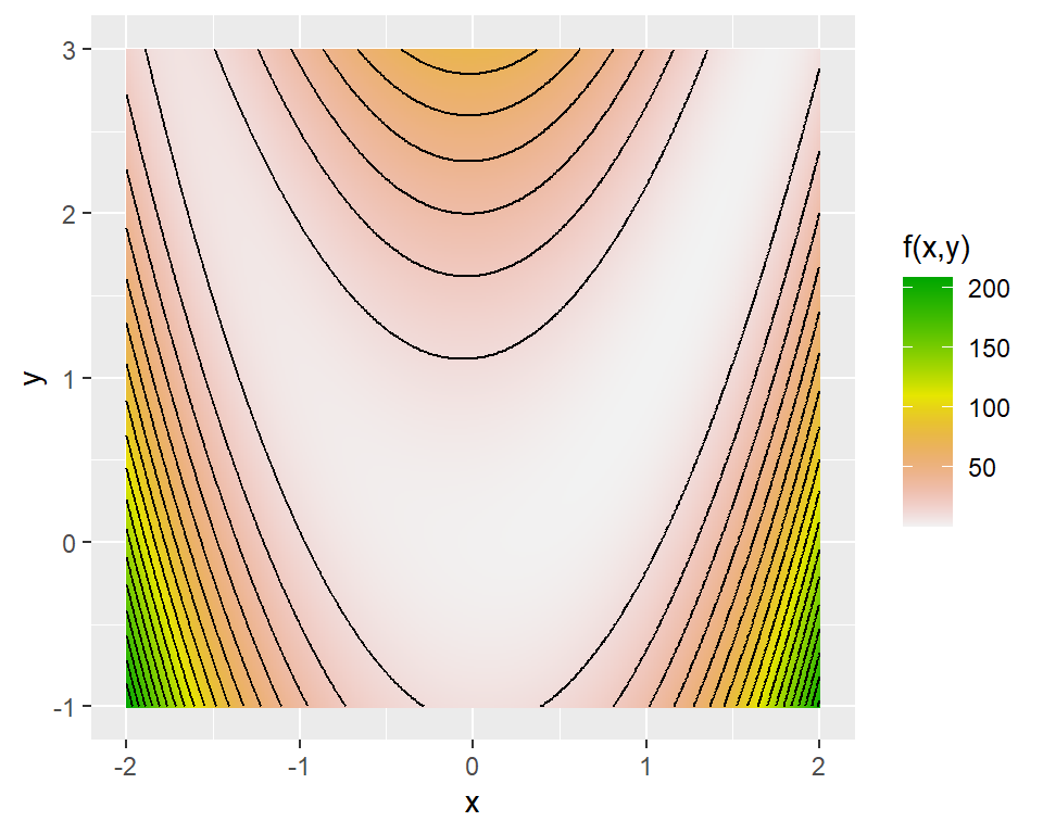 geom_contour(aes(z = z), color = "black", bins = 20) +