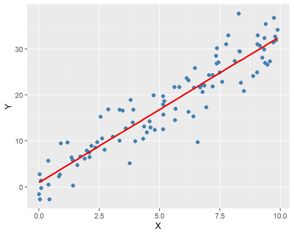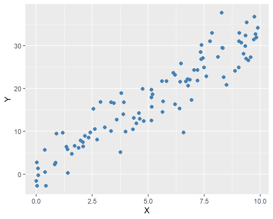 Y <- beta_0 + beta_1 * X + u # Dependent variabledata <- data.frame(