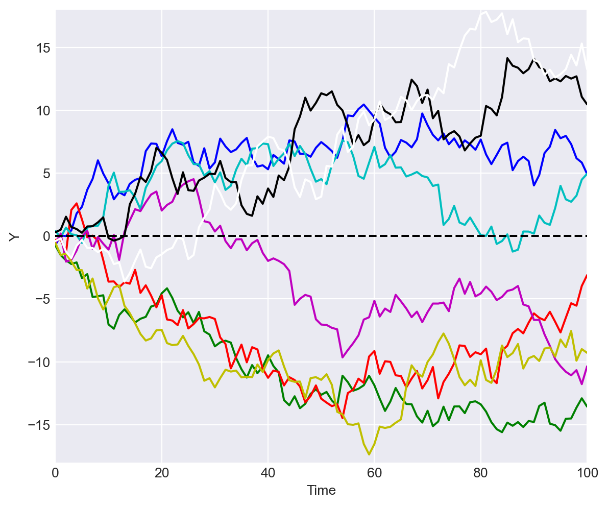 According to this definition, \(Y_t\) is the \(t\)-th coordinate of the random variable \(Y\). Thus, a sample of \(T\) observations on \(Y\) is simply the collection \(\{Y_1, Y_2,\dots,Y_T\}\).