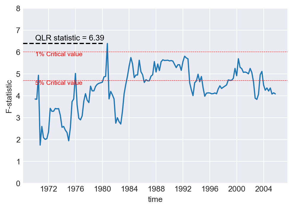 print(f"The break date: {break_tau[np.argmax(savers)]}")The QLR test statistic: 6.97