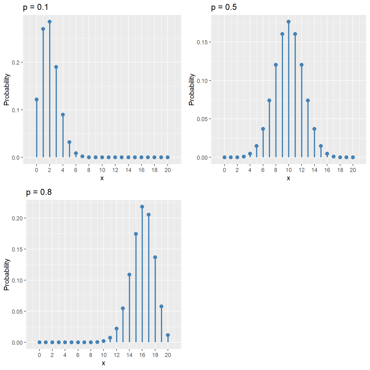 ggplot(data.frame(outcomes = outcomes, p = p), aes(x = outcomes, y = p)) +