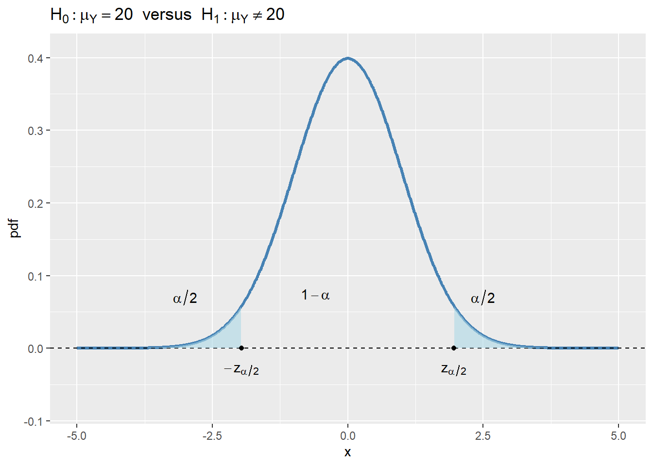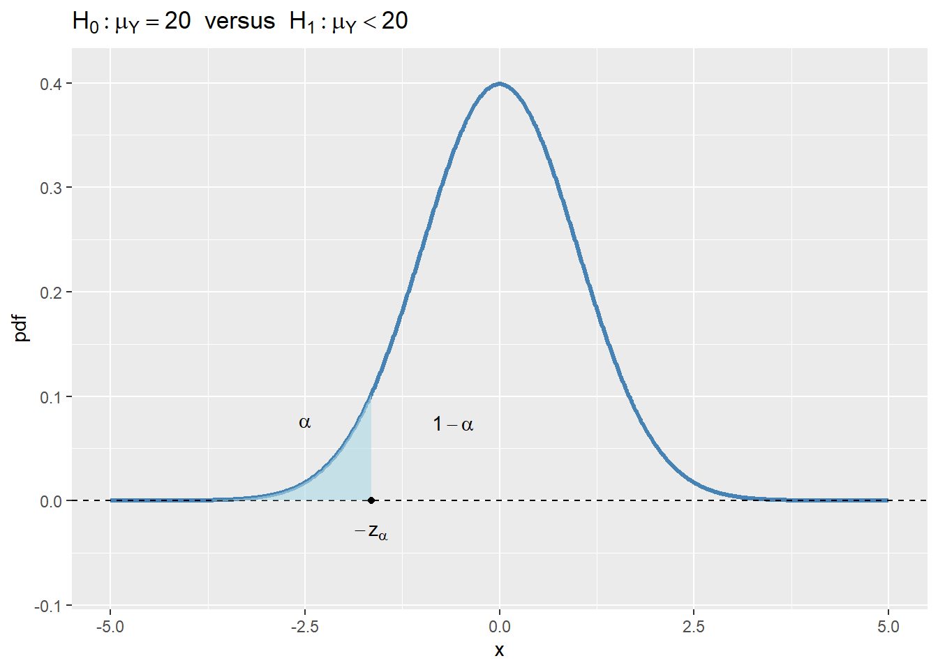 - Let \(\tilde{\mu}_Y\) be another estimator of \(\mu_Y\), and suppose that both \(\hat{\mu}_Y\) and \(\tilde{\mu}_Y\) are unbiased. Then, \(\hat{\mu}_Y\) said to be more efficient (or precise) than \(\tilde{\mu}_Y\) if \(\text{var}(\hat{\mu}_Y) < \text{var}(\tilde{\mu}_Y)\).