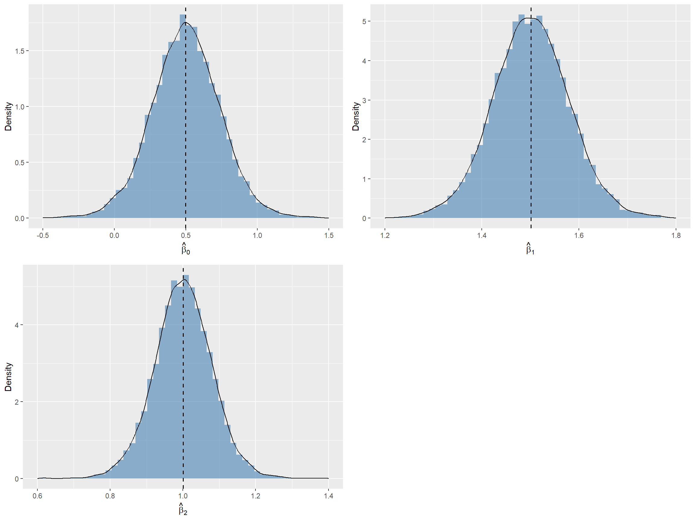 labs(x = expression(hat(beta)[2]), y = "Density") +