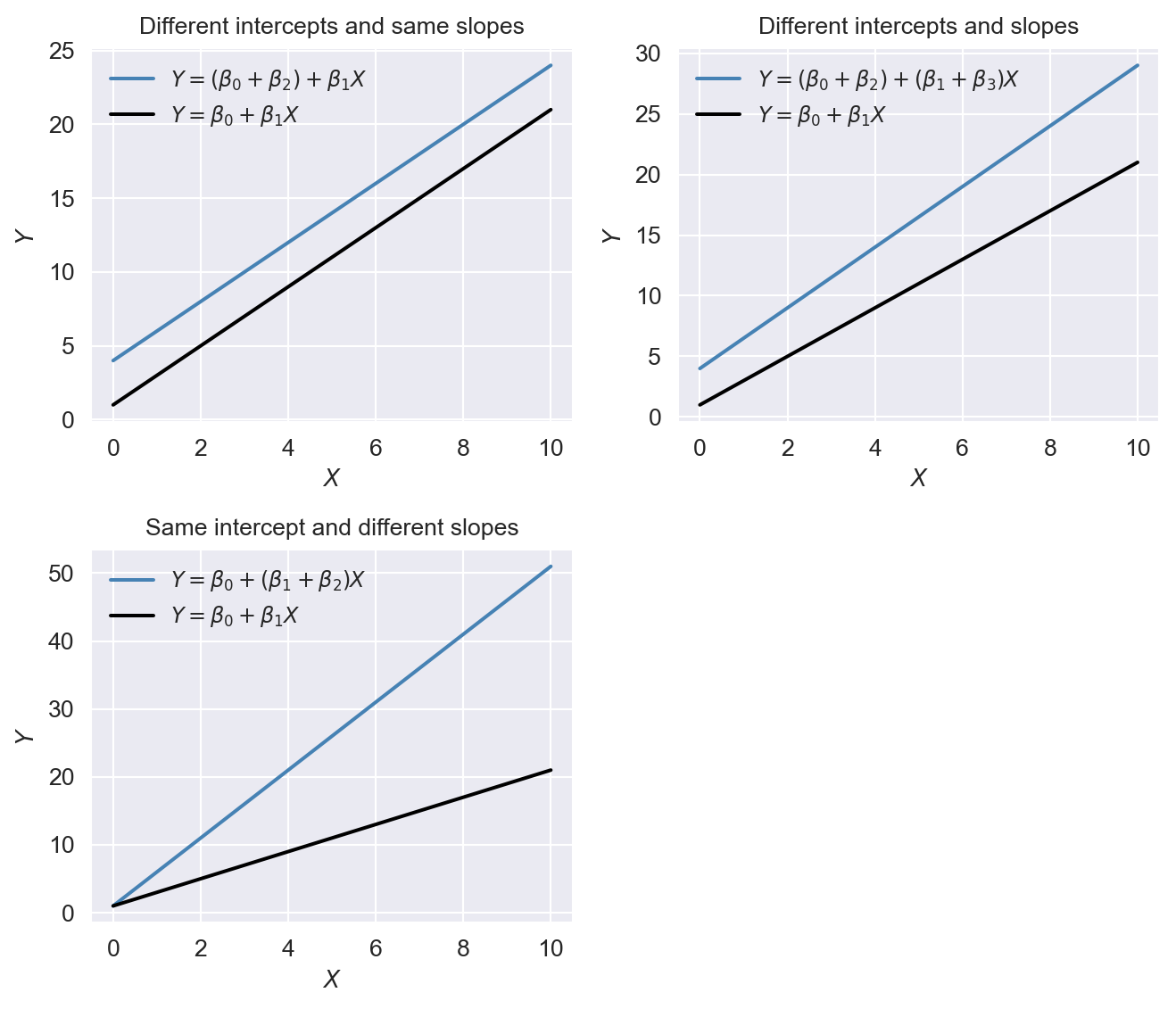 axs[2].set_title('Slope depends on the value of $X_1$', fontsize=10)